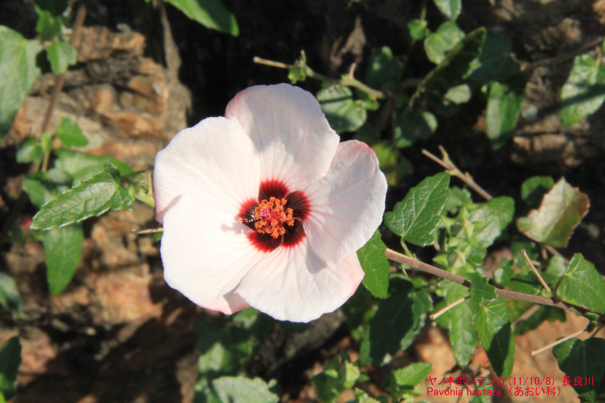 ヤノネボンテンカ(矢の根梵天花) アオイ科。 私は誰(11/9/19) に掲載していた花を、偶然長良川沿いの道で見つけました。 で、たくさんの写真が撮れたので、色々と調べて名前を見つけました。 ヤノネボンテンカというそうです。 南米原産で茶花として観賞用に輸入されたそうですが、 一部雑草化しているということで、 新堀川沿いで見つけたのはそれだと思います。 このご大層ななまえは、ボンテンカ(Urena lobata)という アオイ科の植物に似ていて(あまり似ているようには思えないけど) 葉が鏃(矢の根)に似ているからだというのですが、 きっと、これを日本に導入した人が、風流心から(またはテキトーに) つけたのではないかと。 ちなみに、ボンテンカのほうは、沖縄をふくむ熱帯アジアに自生するそうです。 仏桑花(ブッソウゲ、ハイビスカスのこと)、梵天花など、この仲間にはなぜ 仏っぽい名前がついているんだろう、と思って調べてみると、 「沖縄では後生花と呼ばれ、死人の後生の幸福を願って墓地に植えられる」 とか、何となく納得したような。。。。 ところで、残念ながらここに掲載したのは、長良川沿いで見つけたものです。 でも、まだ新堀川にもあるかも(見つけてもそっとしておいてね)。