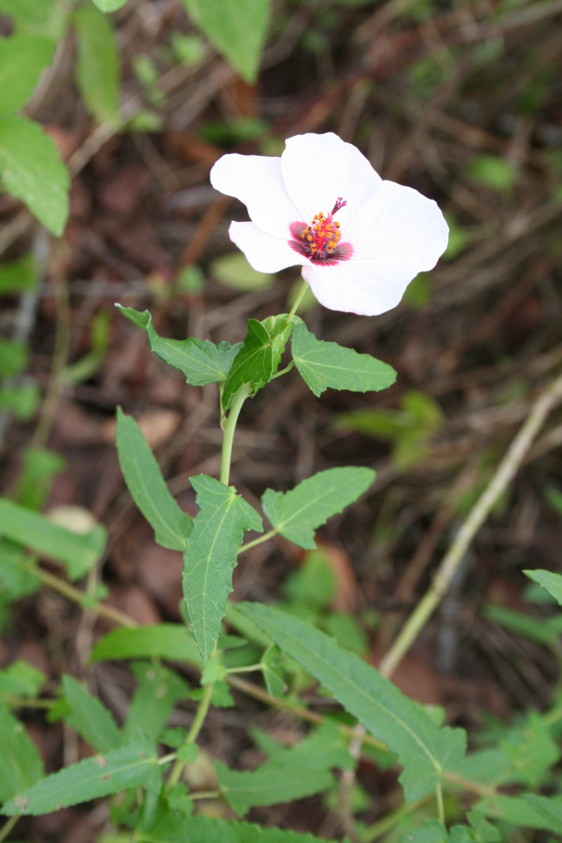 医学部の隣のいわゆる新堀川の河川敷で見つけました。 背丈は30cmくらい、一見して草本のようです。 撮影日は2008年10月3日です(今年もあるか、確認しよっと)。 どう見てもアオイ科、でも手元の図鑑やネットを調べても、類似物は みつかりません。何かの園芸品種が捨てられたのかと思いましたが、 しっかりと根付いていました。 (11/9/19)