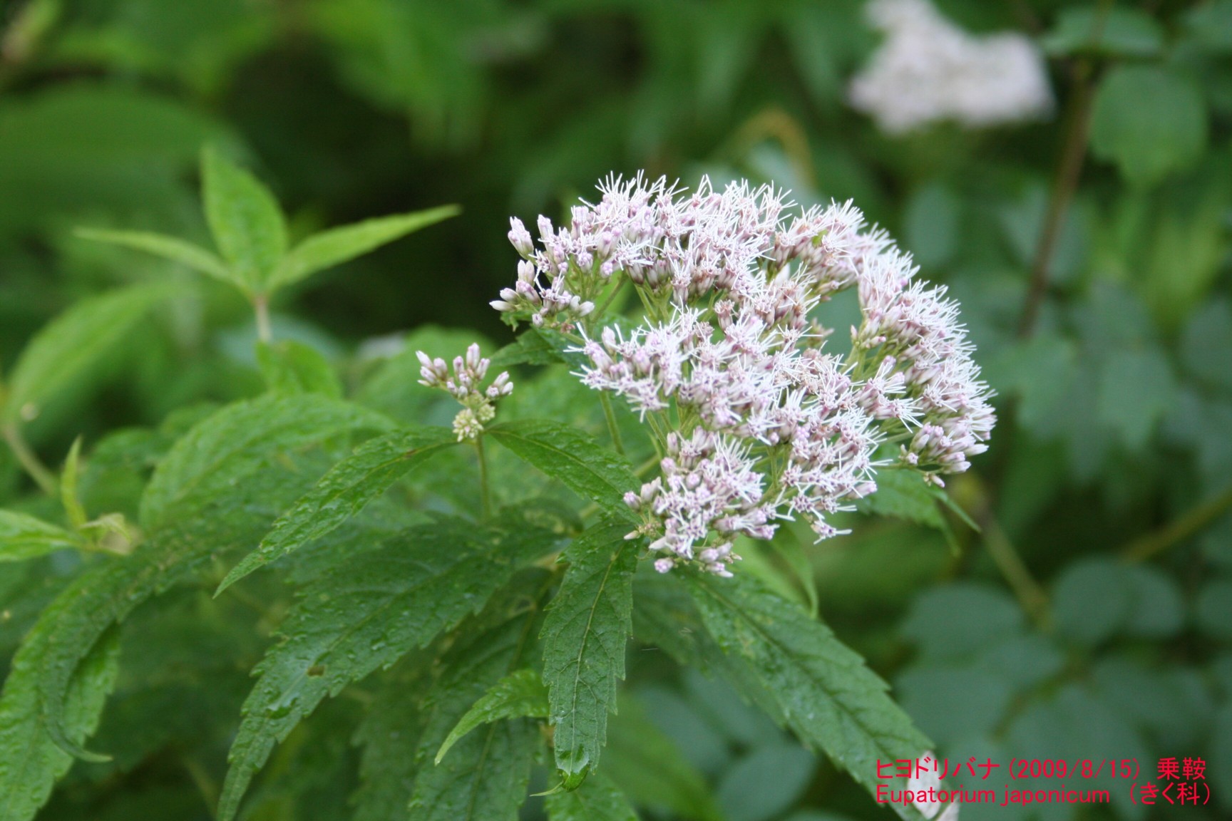 同属のフジバカマに似ていますが、フジバカマは葉が大きく切れ込み3裂するのに対して、こちらは