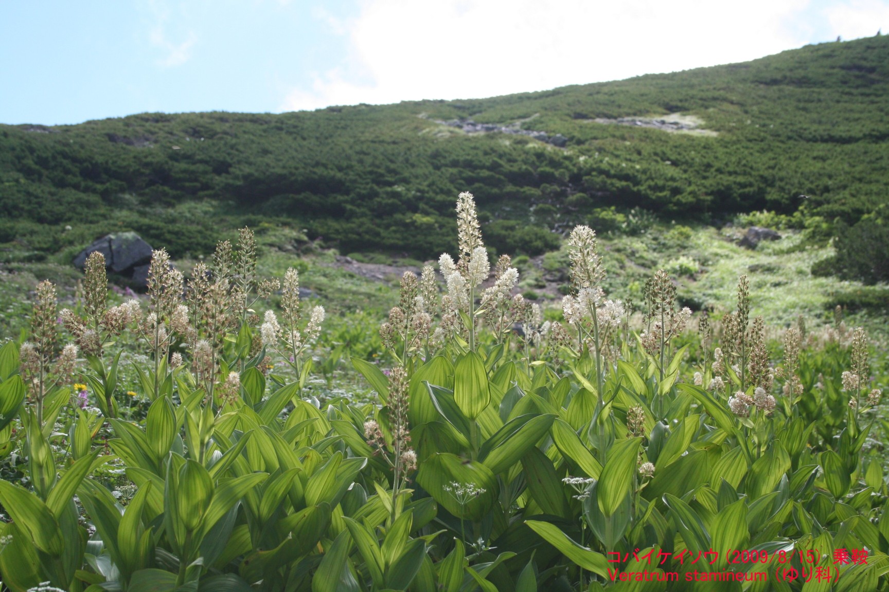 コバイケイソウは写真のように群落を作ることが多く、よく目立ちます。