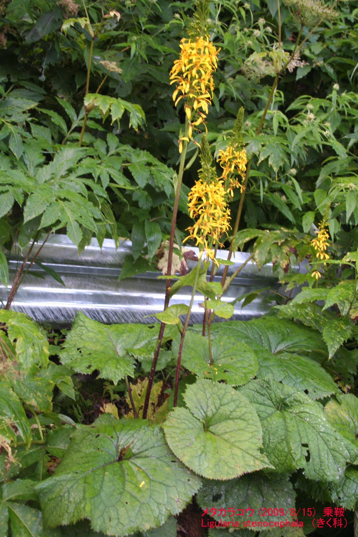 オタカラコウ、すこし小型で弱々しい感じの方がメタカラコウです。