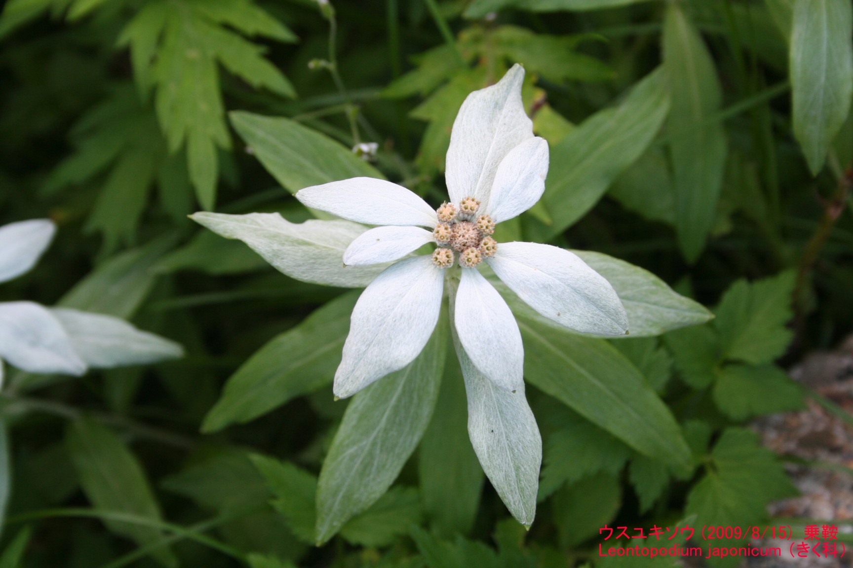 日本に自生するエーデルワイスの仲間(ウスユキソウ属、Leontopodium)です。
