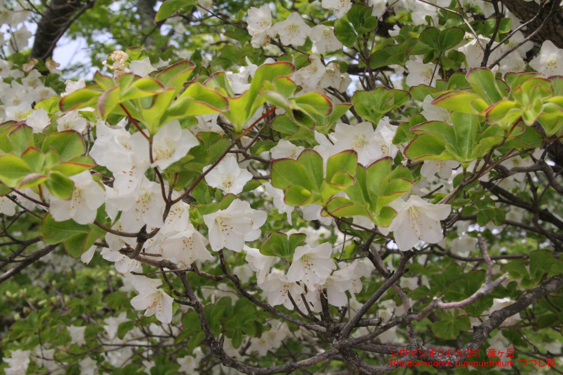 ちなみに、アカヤシオは花時に葉がなく、シロヤシオと花の印象は大きく異なります。