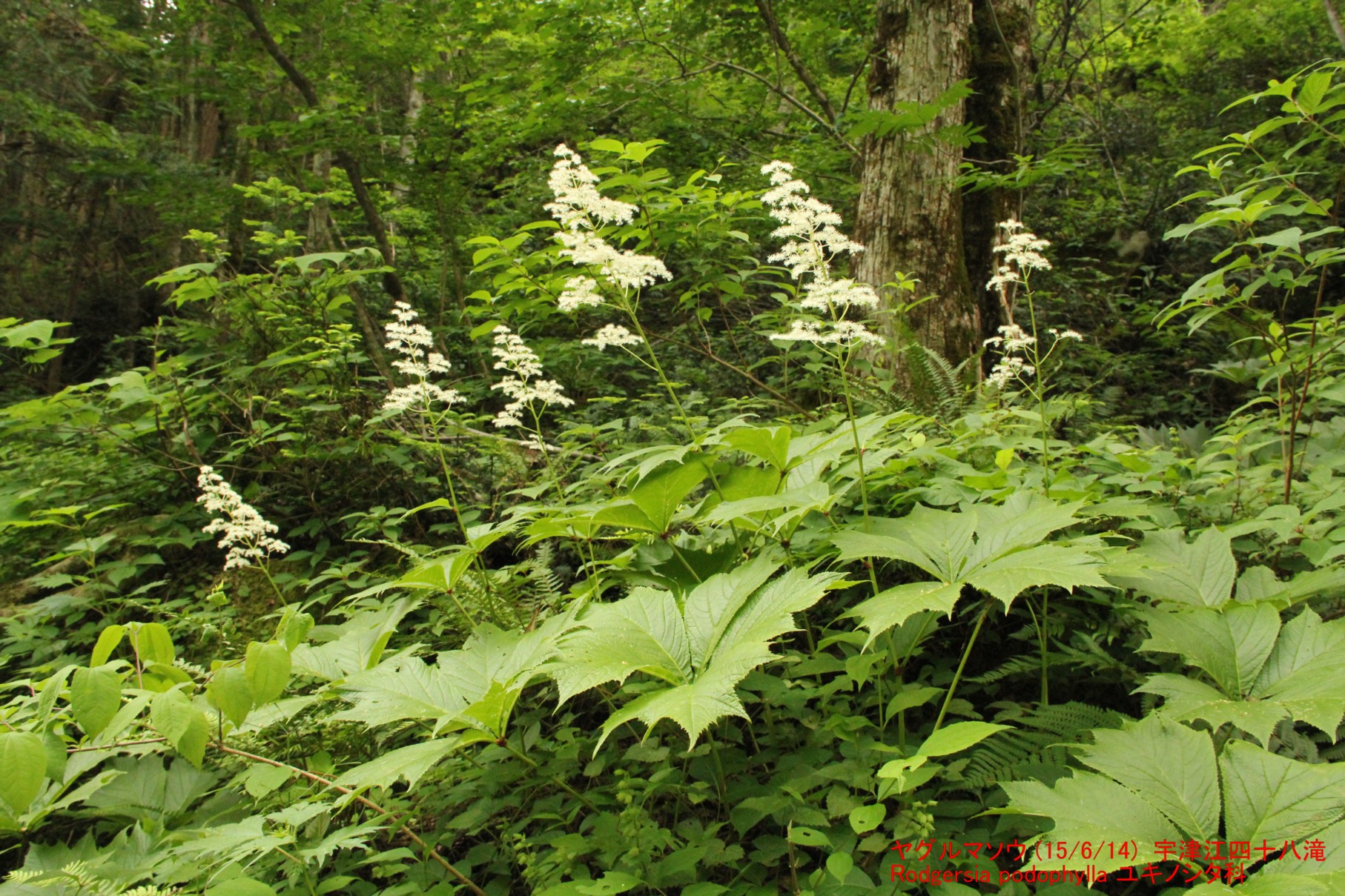 この葉を、鯉のぼりの「矢車」に見立てて、ヤグルマソウです。